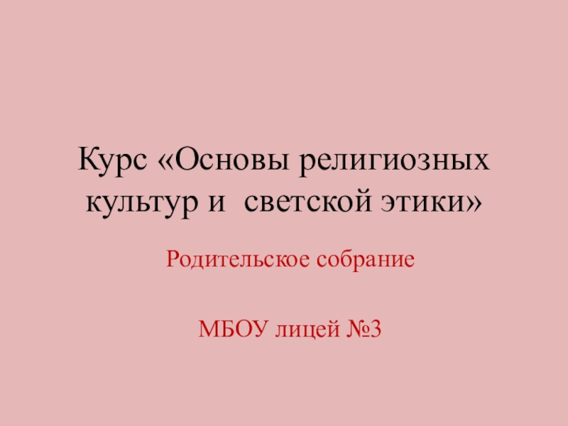 Курс «Основы религиозных культур и светской этики»Родительское собраниеМБОУ лицей №3