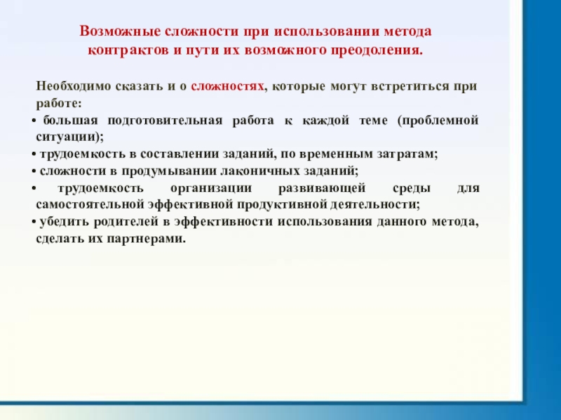 трудоемкость организации развивающей среды для самостоятельной эффективной продуктивной деятельности;