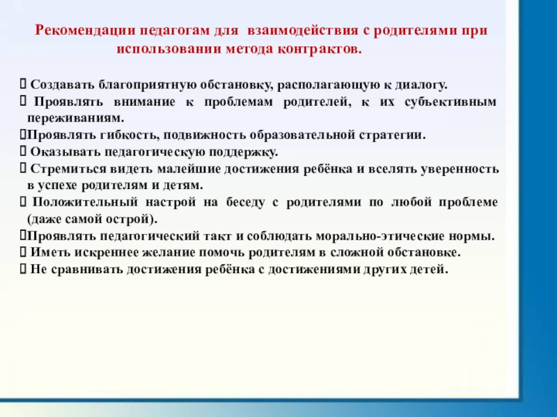 Положительный настрой на беседу с родителями по любой проблеме (даже самой острой).