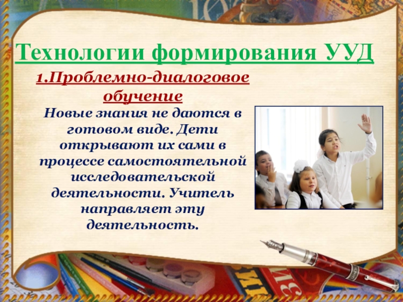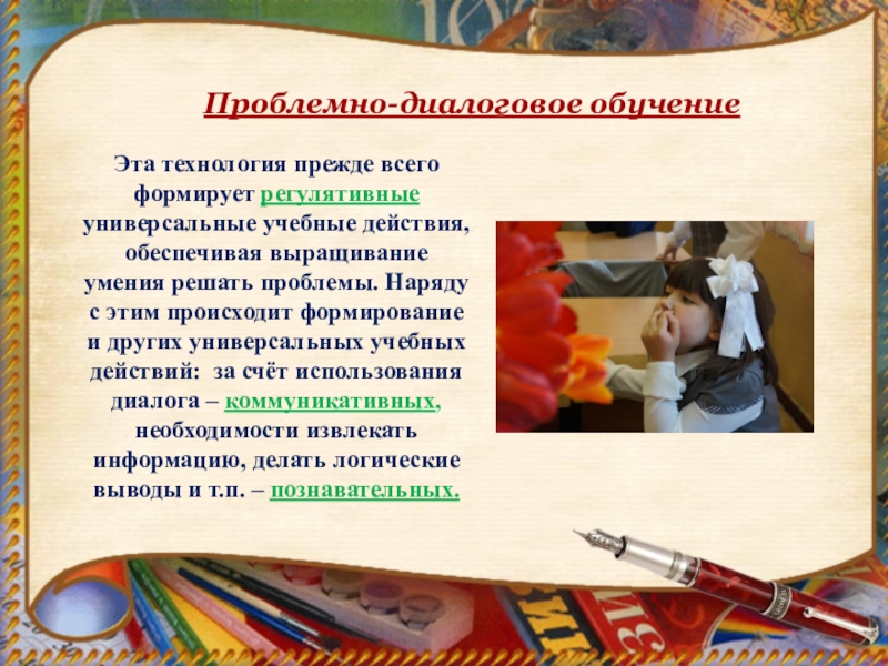 выращивание умения решать проблемы. Наряду с этим происходит формирование и других универсальных учебных действий: за счёт использования диалога – коммуникативных, необходимости извлекать информацию, делать логические выводы и т.п. – познавательных.