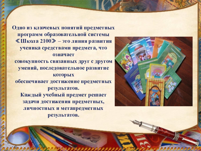 Слайд 5Одно из ключевых понятий предметных программ образовательной системы