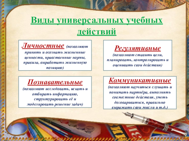 Личностные (позволяют принять и осознать жизненные ценности, нравственные