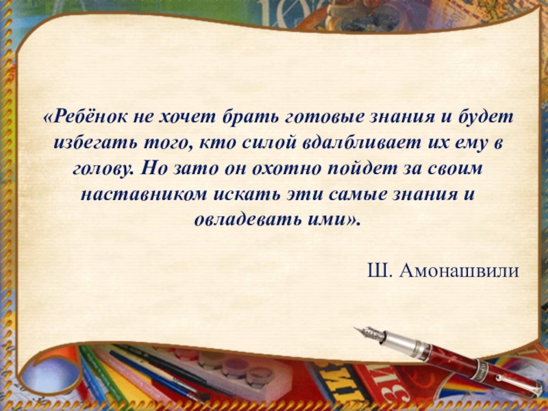 Слайд 2«Ребёнок не хочет брать готовые знания и будет избегать того, кто