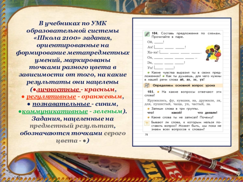 В учебниках по УМК образовательной системы «Школа 2100» задания, ориентированные на