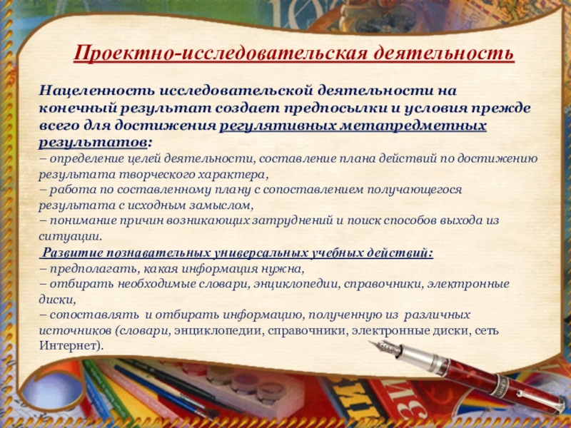 Нацеленность исследовательской деятельности на конечный результат создает предпосылки и условия