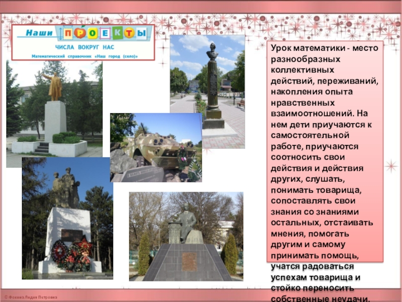 Слайд 19Урок математики - место разнообразных коллективных действий, переживаний, накопления опыта нравственных