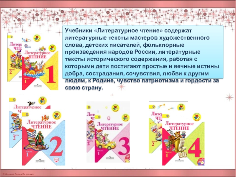Слайд 11Учебники «Литературное чтение» содержат литературные тексты мастеров художественного слова, детских писателей,