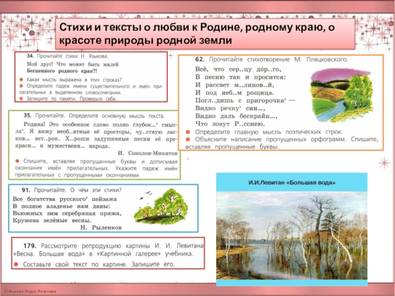 Слайд 7Стихи и тексты о любви к Родине, родному краю, о красоте
