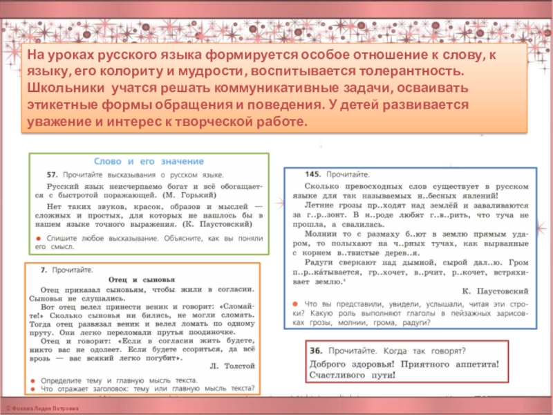 к интеллектуальному труду, стремления к познанию. Материал учебников обогащён культурными и ассоциативными связями с литературой, живописью, историей, в них находят своё отражение знаменательные свершения и события нашей Родины.