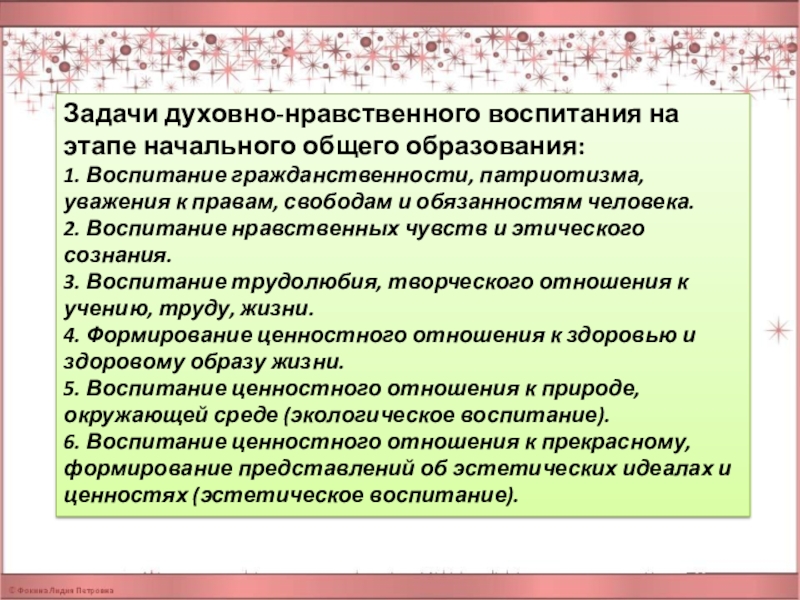 Слайд 3Задачи духовно-нравственного воспитания на этапе начального общего образования: