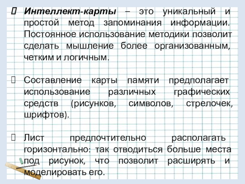 Слайд 9Интеллект-карты – это уникальный и простой метод запоминания информации. Постоянное использование