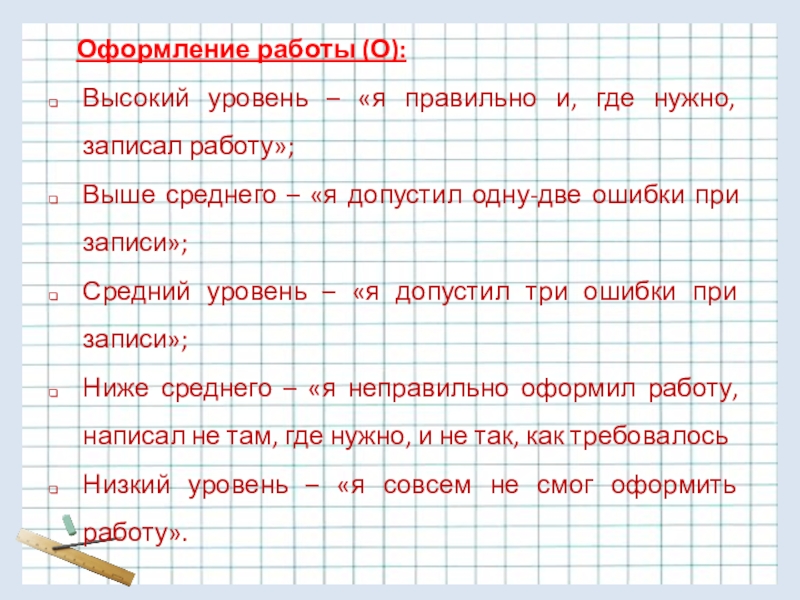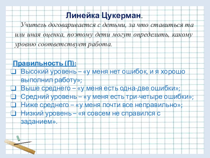 иная оценка, поэтому дети могут определить, какому уровню соответствует работа.