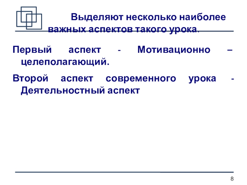 Второй аспект современного урока - Деятельностный аспект