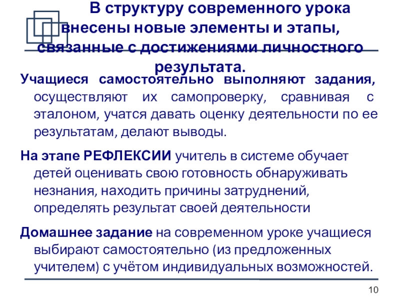 Домашнее задание на современном уроке учащиеся выбирают самостоятельно (из предложенных учителем) с учётом индивидуальных возможностей.