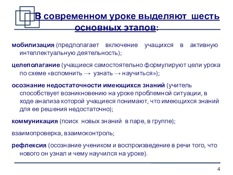 мобилизация (предполагает включение учащихся в активную интеллектуальную деятельность);