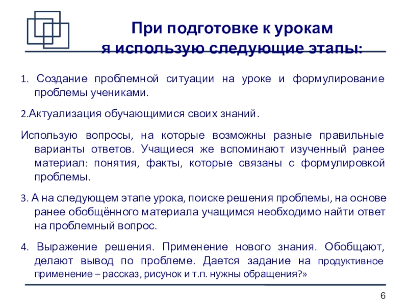 4. Выражение решения. Применение нового знания. Обобщают, делают вывод по проблеме. Дается задание на продуктивное применение – рассказ, рисунок и т.п. нужны обращения?»