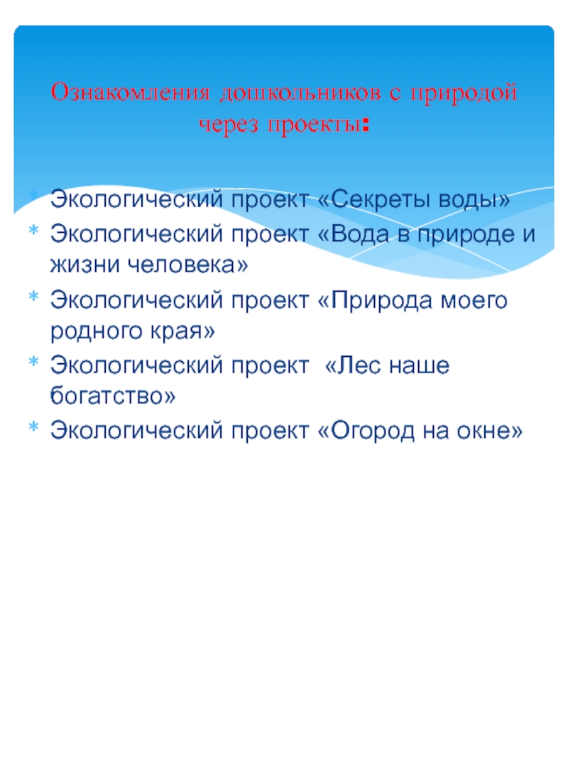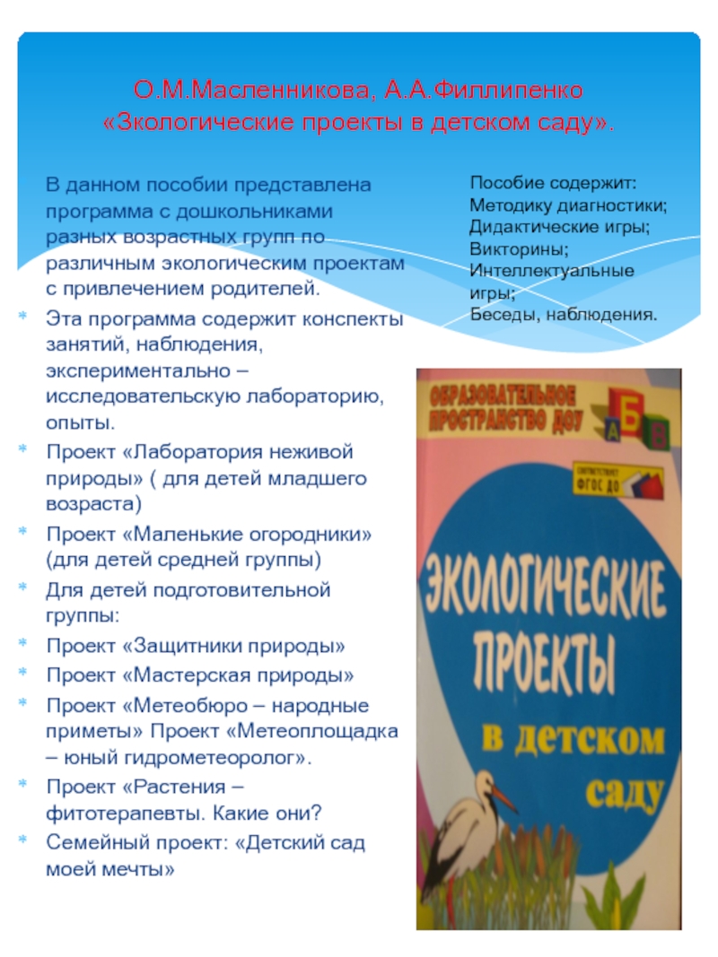 Ознакомления дошкольников с природой через проекты: