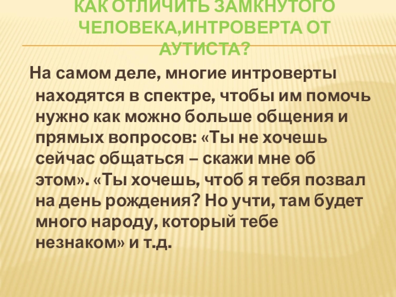 КАК ОТЛИЧИТЬ ЗАМКНУТОГО ЧЕЛОВЕКА,ИНТРОВЕРТА ОТ АУТИСТА?