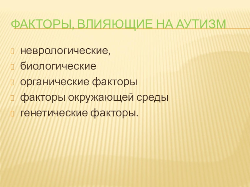 Слайд 17ФАКТОРЫ, ВЛИЯЮЩИЕ НА АУТИЗМ