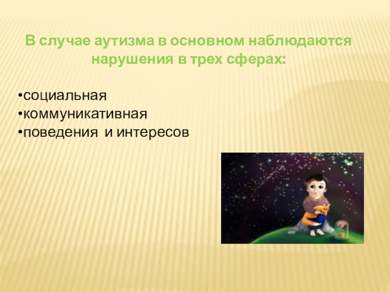 Слайд 19В случае аутизма в основном наблюдаются нарушения в трех сферах: