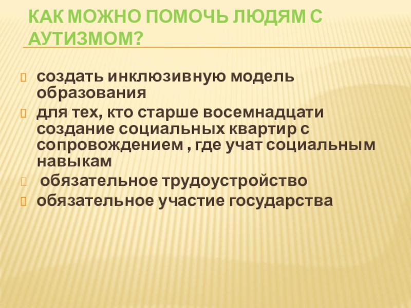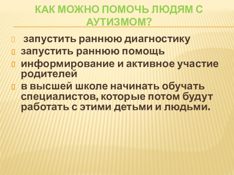 Слайд 21КАК МОЖНО ПОМОЧЬ ЛЮДЯМ С АУТИЗМОМ?