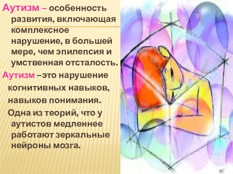 Слайд 3Аутизм – особенность развития, включающая комплексное нарушение, в большей мере, чем