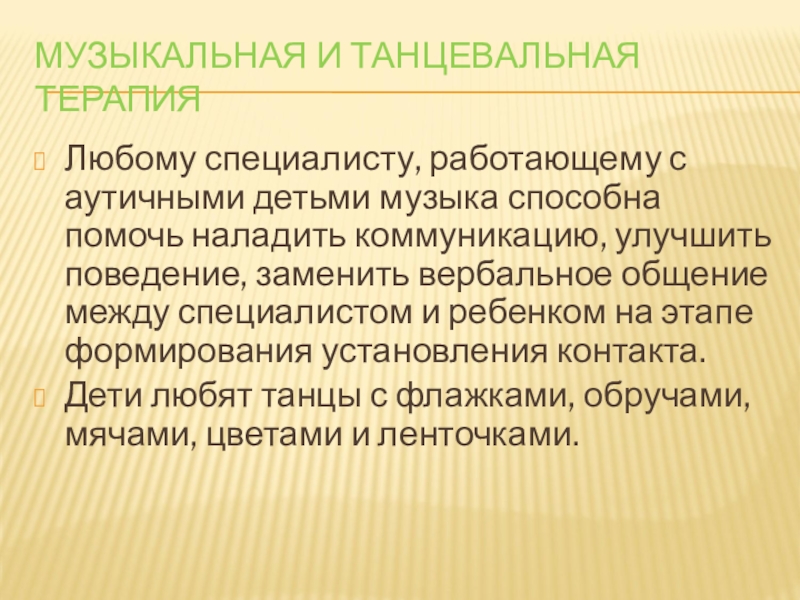 Слайд 28МУЗЫКАЛЬНАЯ И ТАНЦЕВАЛЬНАЯ ТЕРАПИЯ