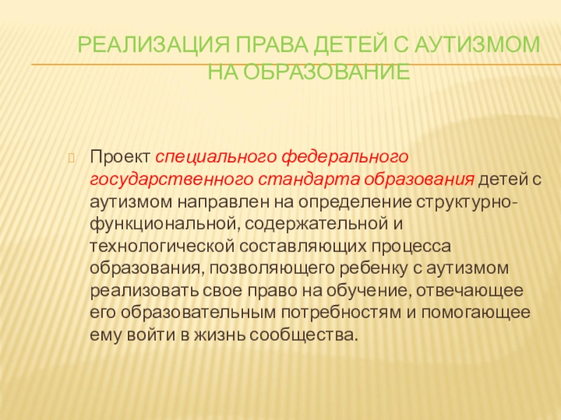 Слайд 25РЕАЛИЗАЦИЯ ПРАВА ДЕТЕЙ С АУТИЗМОМ НА ОБРАЗОВАНИЕ