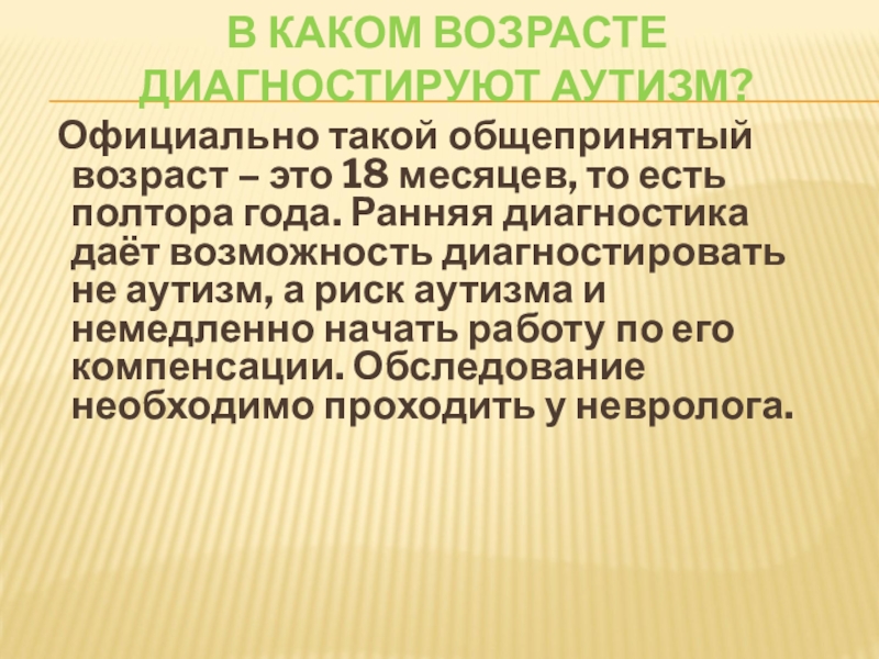 Слайд 20В КАКОМ ВОЗРАСТЕ ДИАГНОСТИРУЮТ АУТИЗМ?