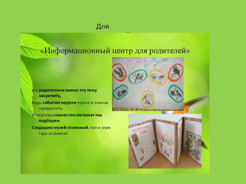 Слайд 26В конце недели провели итоговое мероприятие : «Встречаем птиц»