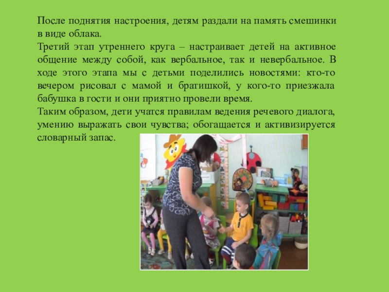 где ребенок может проявить свою речевую активность, является общение в ходе утреннего круга как важного режимного момента.