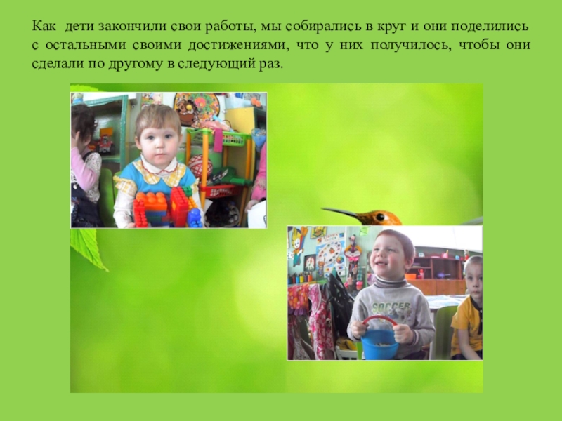 Слайд 22Как дети закончили свои работы, мы собирались в круг и они