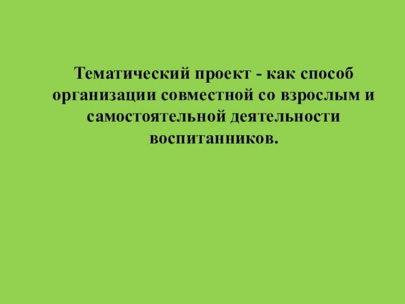 Слайд 1Тематический проект - как способ организации совместной со взрослым и самостоятельной