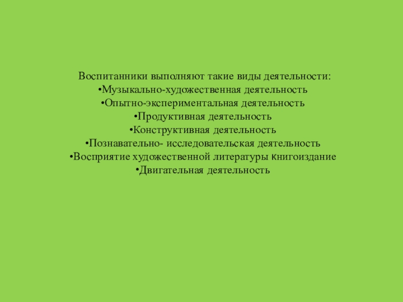 Слайд 15Воспитанники выполняют такие виды деятельности: