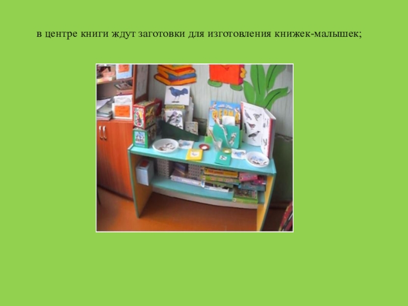 Слайд 12в центре книги ждут заготовки для изготовления книжек-малышек;