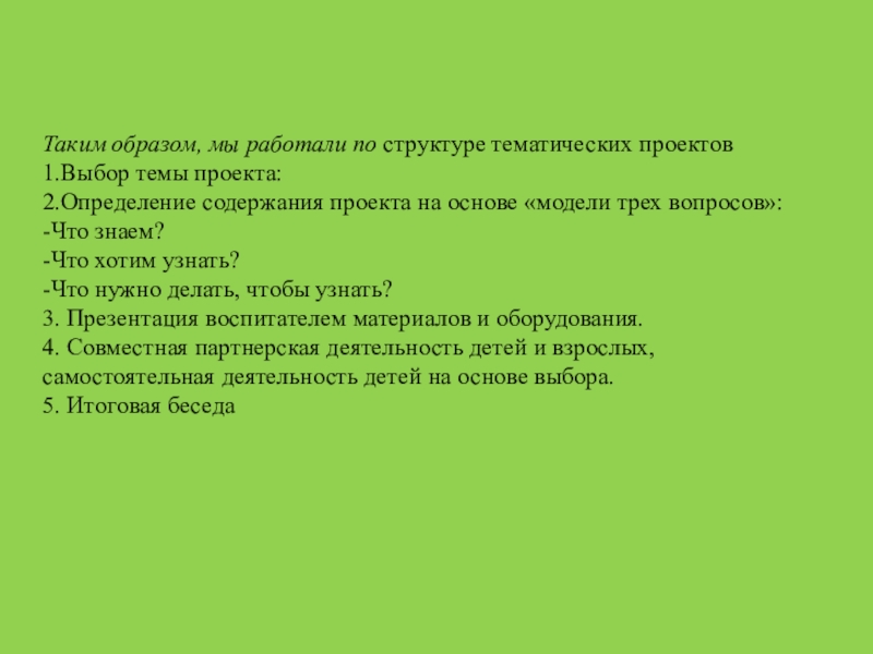 Слайд 25Таким образом, мы работали по структуре тематических проектов