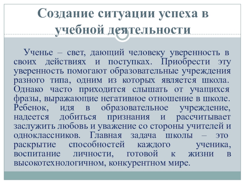 Слайд 2Создание ситуации успеха в учебной деятельности
