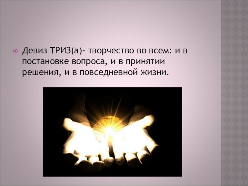 Девиз ТРИЗ(а)- творчество во всем: и в постановке вопроса, и в