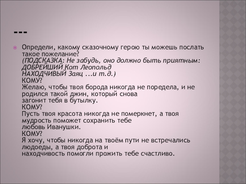 Определи, какому сказочному герою ты можешь послать такое пожелание?