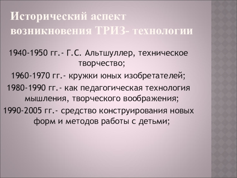 Слайд 4Исторический аспект возникновения ТРИЗ- технологии