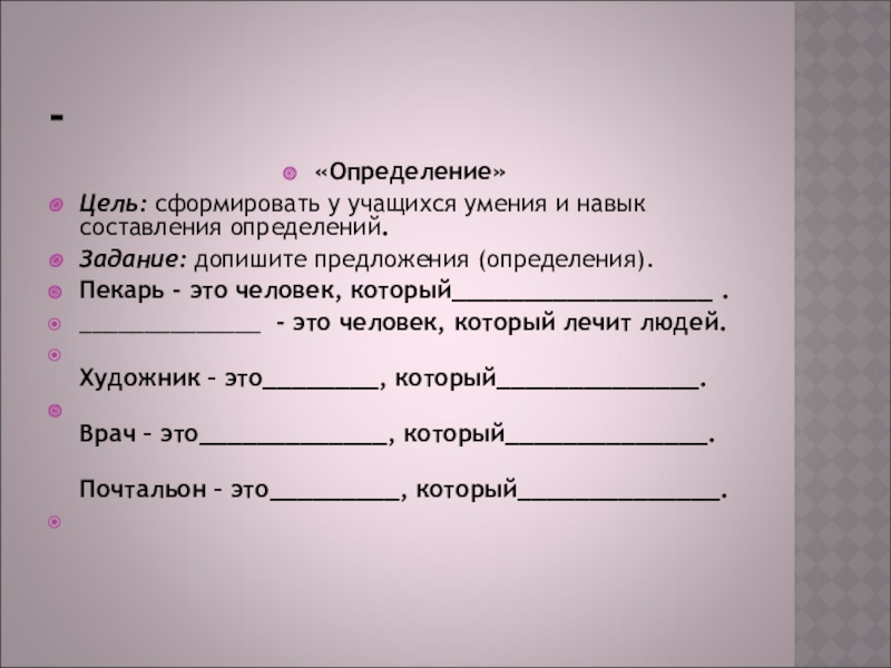 Цель: обогащать словарный запас учащихся, учить их находить в составе слов общее. Задание: объяснить родство слов.