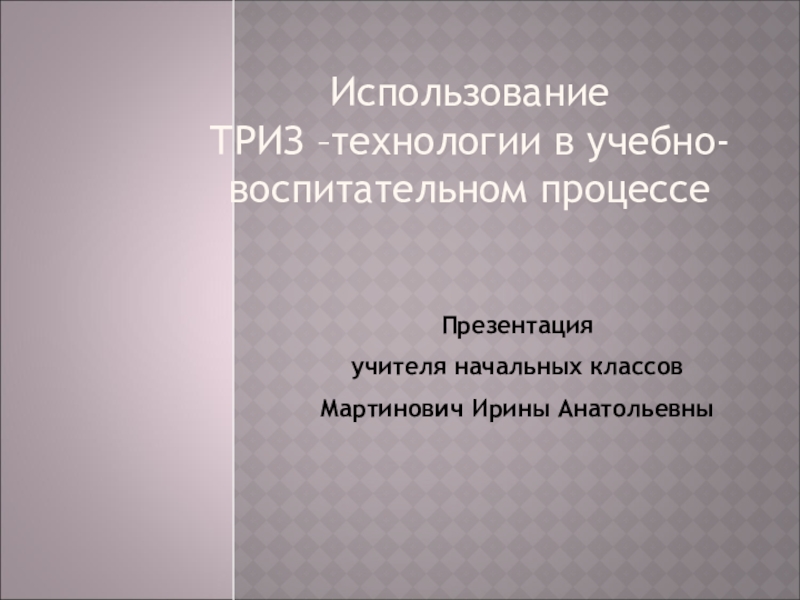 ТРИЗ –технологии в учебно-воспитательном процессе