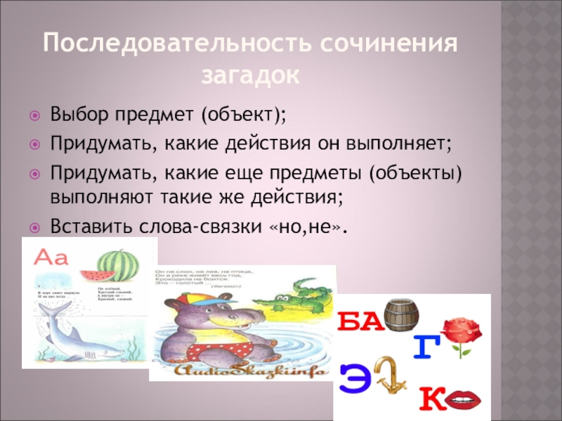 Слайд 39Последовательность сочинения загадок