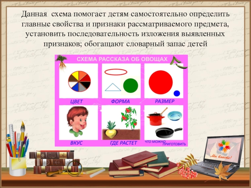 предмета, установить последовательность изложения выявленных признаков; обогащают словарный запас детей