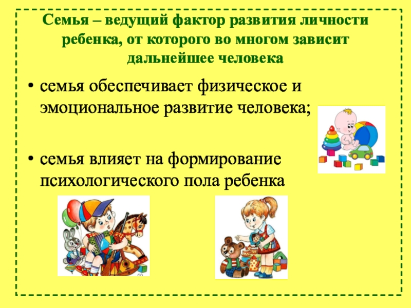 семья обеспечивает физическое и эмоциональное развитие человека;
