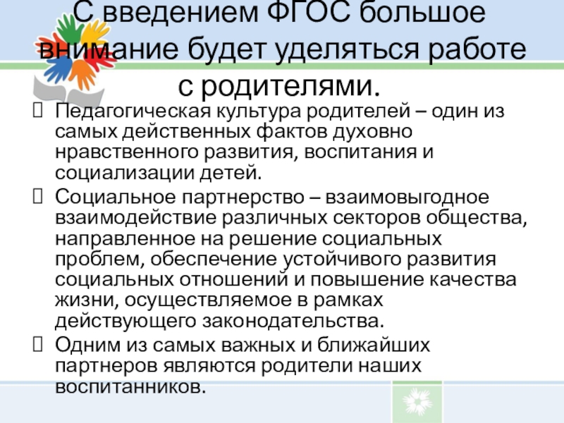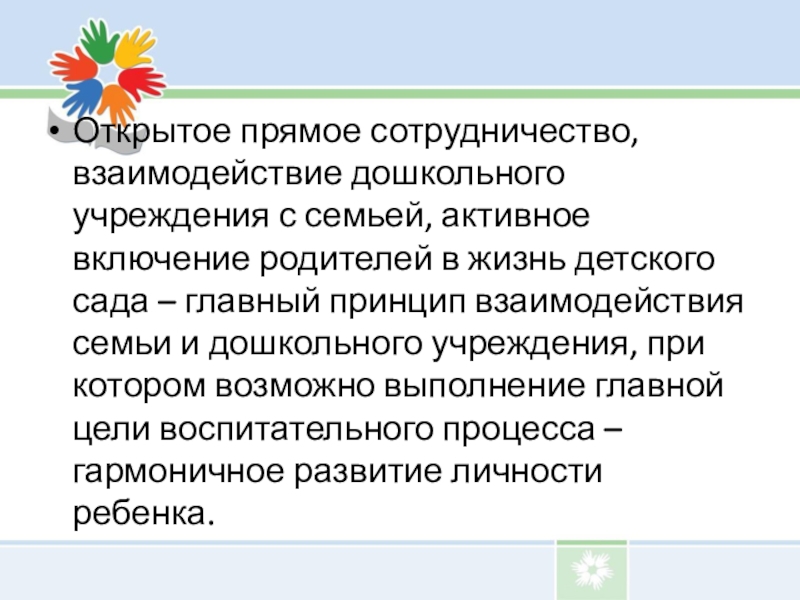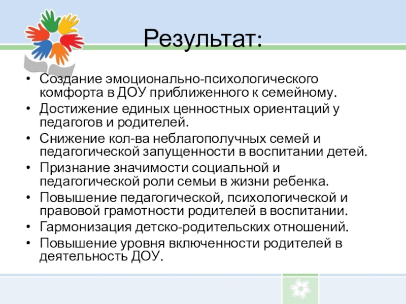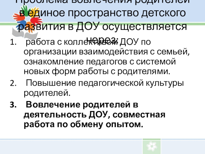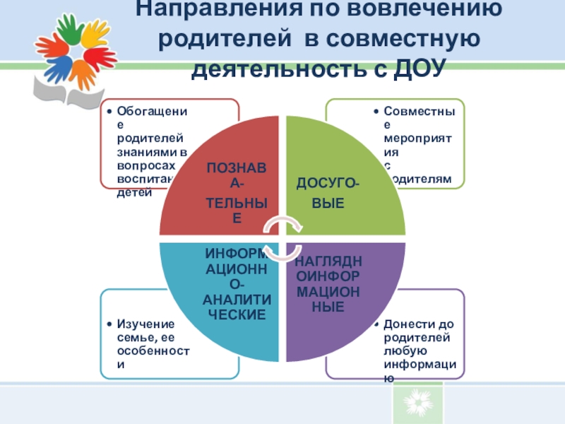 Вовлечение родителей в деятельность ДОУ, совместная работа по обмену опытом.