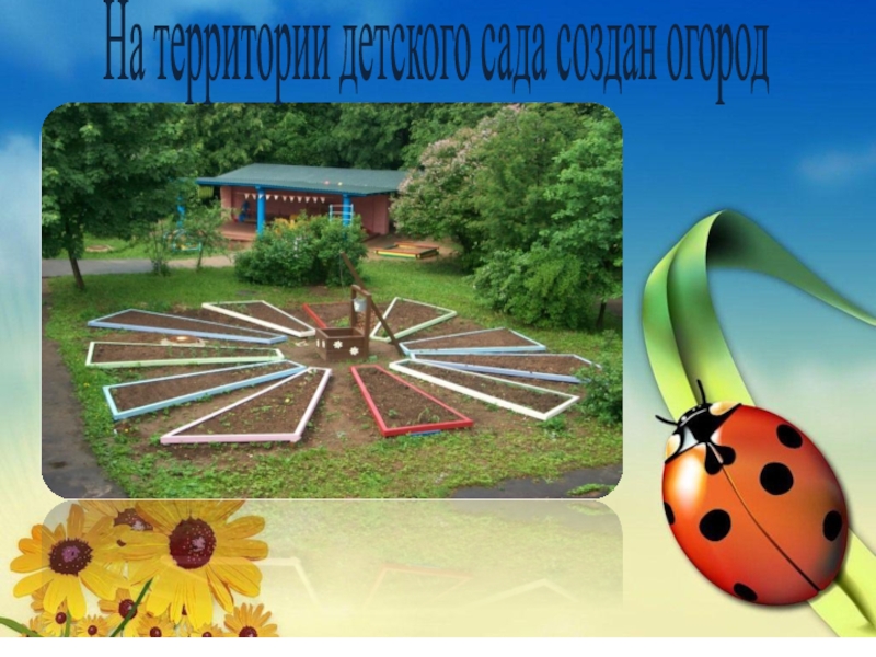 Слайд 5На территории детского сада создан огород