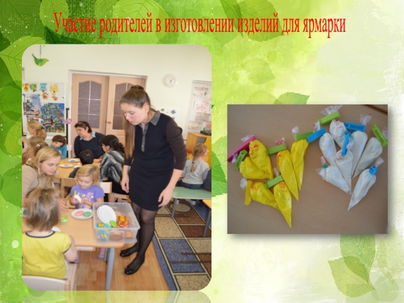 Слайд 42Участие родителей в изготовлении изделий для ярмарки