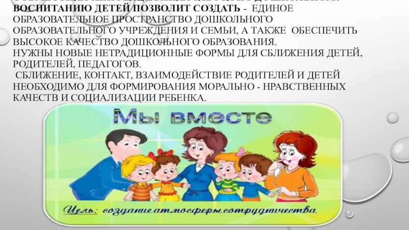 НУЖНЫ НОВЫЕ НЕТРАДИЦИОННЫЕ ФОРМЫ ДЛЯ СБЛИЖЕНИЯ ДЕТЕЙ, РОДИТЕЛЕЙ, ПЕДАГОГОВ.