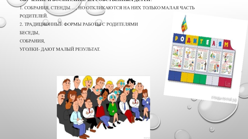 1. СОБРАНИЯ, СТЕНДЫ…., НО ОТКЛИКАЮТСЯ НА НИХ ТОЛЬКО МАЛАЯ ЧАСТЬ РОДИТЕЛЕЙ.